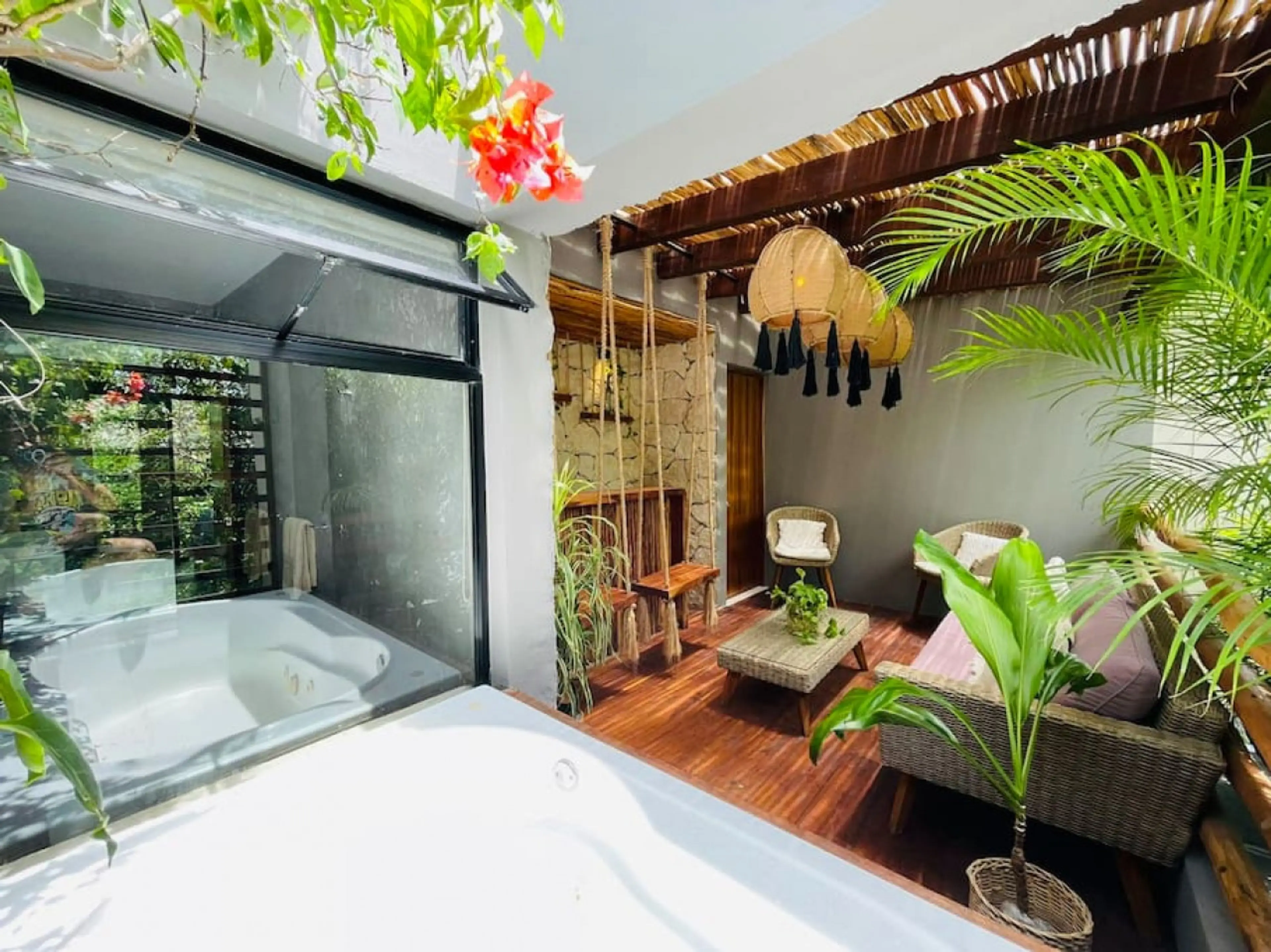 Villa with PRIVATE POOL / JACUZZI & BAR ( MAY 2022) is located in Aldea Zama the most exclusive residencial area in the middle of town and the beach of Tulum, with all services . It's has you own private pool with hamacas, terrace Bar with a sunset view and a private jacuzzi perfect for a romantic n...